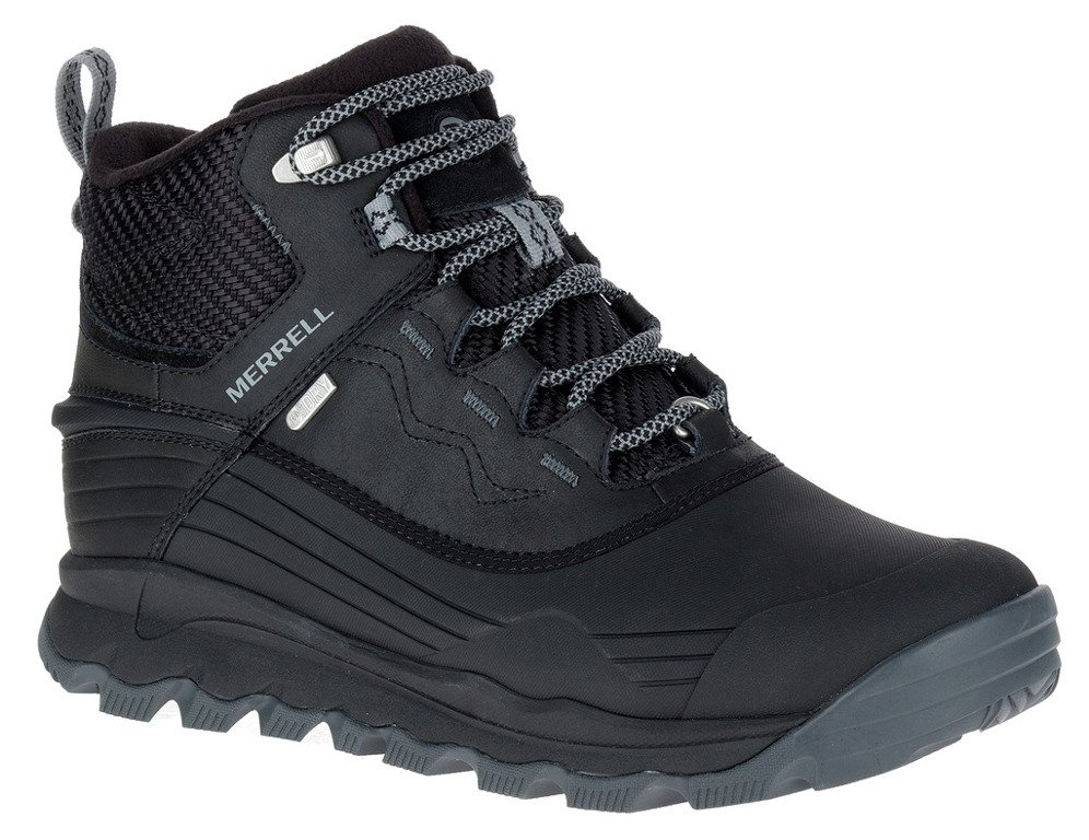 MERRELL THERMO VORTEX 6 Mid WP WATERPROOF  to męski model butów trekkingowo-zimowych. Zapewniają doskonałą ochronę, a dzięki podeszwie M Select Grip zapewniają bardzo dobrą przyczepność nawet na śliskiej zmrożonej nawierzchni. Cholewka wykonana z wodoodpornej skóry. Dół cholewki pokrytu gumą TPU. Buty są niezwykle wygodne i lekkie. Sprawdzą się szczególnie w mroźne dni. Są idealne do pieszych zimowych wędrówek. Posiadają zaczepy na stuptuty i rakiety śnieżne.