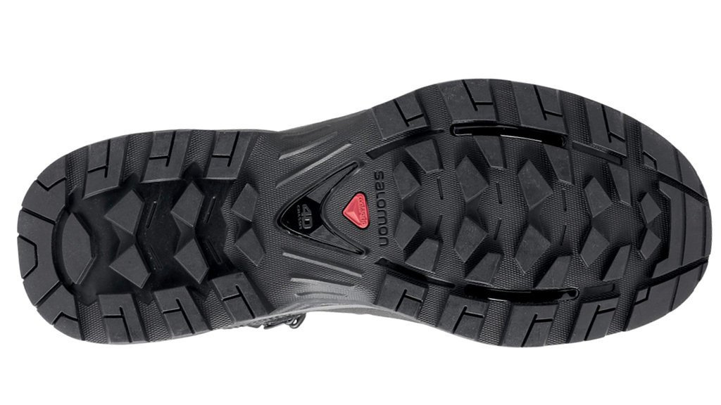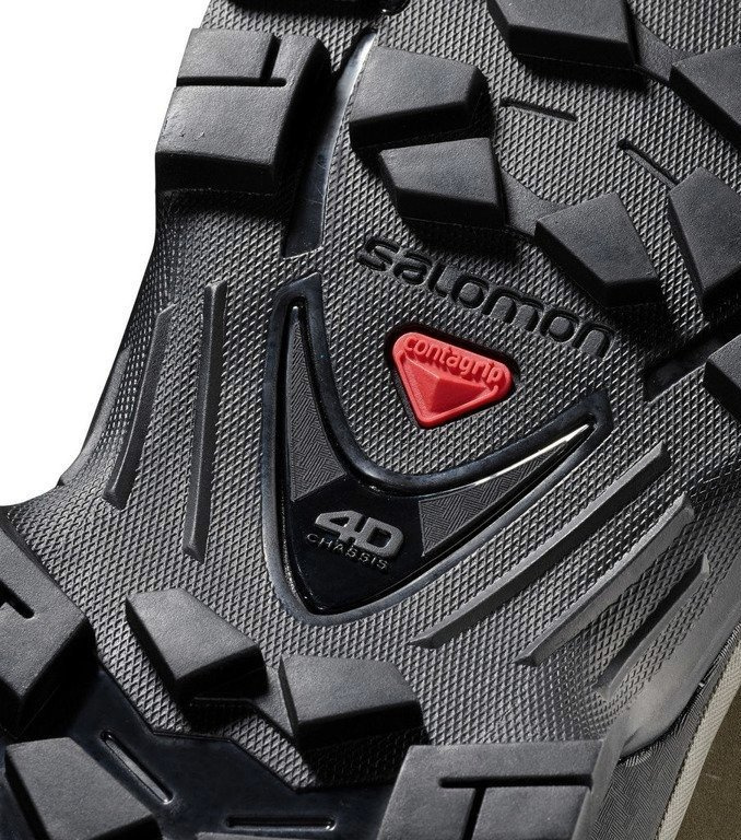 W bucie zastosowano genialne podeszwy Salomona o nazwie Contagrip® TD z systemem 4D Advanced Chassis dający nadzwyczajną przyczepność na suchym i śliskim podłożu we wszystkich kierunkach szczególnie odczuwalną podczas poruszania się w dół zbocza. Zastosowanie specjalnej platformy w podeszwie zapewnia użytkownikom dynamiczne oddziaływanie na stopę podczas ruchu oraz kontroluje współpracę ze stopą przy zginaniu podeszwy, chroni kostkę przed skręceniem.
