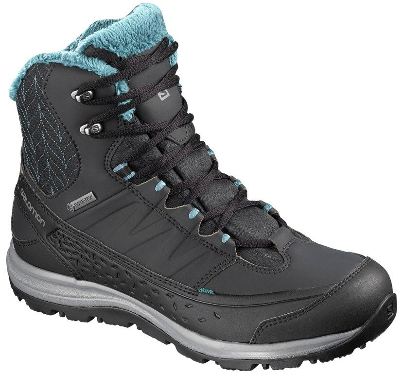 SALOMON KAINA MID GTX - nowa wersja butów zimowych z wysoką cholewką, wyposażonych w podeszwę zapewniającą stopom naturalny ruch, wodoodporną membranę Gore-tex oraz warstwę ocieplającą Climatherm™. Idealne obuwie na zimową aktywność w górach. Zapewniają komfort cieplny aż do -18st. C.