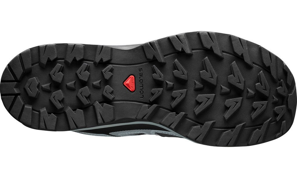 W bucie zastosowano genialne podeszwy Salomona o nazwie   High Traction Contagrip® dające bardzo dobrą przyczepność nawet na mokrym i śliskim podłożu. Zapewnia użytkownikom dynamiczne oddziaływanie na stopę podczas ruchu oraz  kontroluje współpracę ze stopą przy zginaniu podeszwy, chroni kostkę przed skręceniem. Poprawia bezpieczeństwo, przepływ energii, stabilność i odbicie.