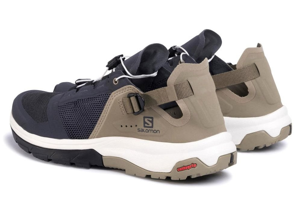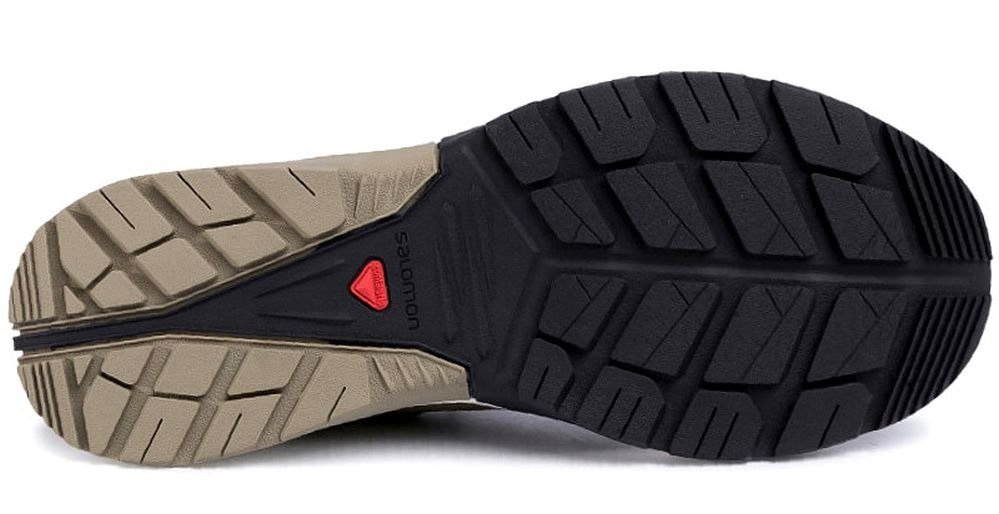 W bucie zastosowano genialne podeszwy Salomona o nazwie High Traction Contagrip® z systemem EnergyCell™ dające nadzwyczajną przyczepność nawet na mokrym i śliskim podłożu. Dzięki płaskim i gładkim występom protektora oraz wąskim rowkom podeszwy zapewniają poczucie pewności i bezpieczeństwa szczególnie amatorom aktywności związanej ze sportami wodnymi lub przemieszczaniem się wzdłuż koryt rzek i strumieni górskich.