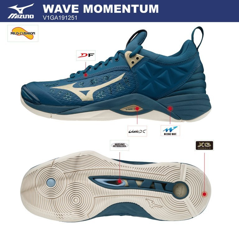 Mizuno Wave Momentum to profesjonalne buty do siatkówki. Rewolucyjna, bezszwowa konstrukcja górnej części buta, która sprawia że to lekki i bardzo wygodny but. Dzięki zastosowanym technologiom spełniają najwyższe wymagania ambitnego i profesjonalnego gracza w siatkówkę.