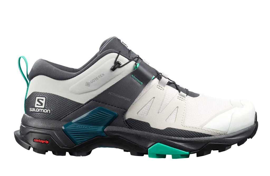 SALOMON X ULTRA 4 GTX  - uniwersalne, lekkie buty o precyzyjnym dopasowaniu, stabilne, niezastąpione podczas szybkich spacerów w wymagającym terenie. Jest to wszechstronny model przeznaczony dla amatorów trekkingu, do chodzenia po górach, nierównym kamienistym terenie. Łączy precyzyjne dopasowanie z ostrą rzeźbą bieżnika, zapewnia wentylację i wsparcie stopy, dzięki czemu sprawdzi się nawet na najbardziej wymagających szlakach.