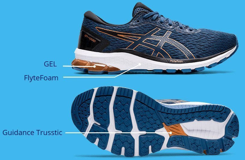 - Właściwy dla ASICS, który składa się z dwóch elementów podeszwy środkowej o różnym poziomie gęstości i wkomponowanych tak aby łatwo kontrolować nadmierną pronację.