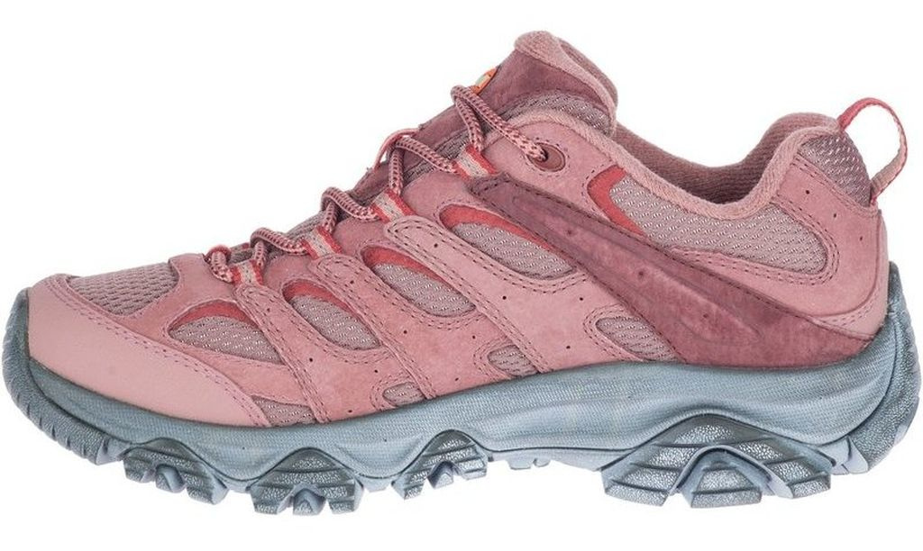MERRELL MOAB 3 - Bardzo lekkie, przewiewne i uniwersalne obuwie. Idealne na górskie spacery lub do noszenia na co dzień. Buty dla miłośników wędrówek oraz trekkingu. Posiadają głęboki bieżnik z gęsto osadzonymi kołeczkami firmowanymi przez Vibram, poduszkę Merrell Air Cushion. Doskonale wyprofilowana podeszwa zapewnia komfort i wygodę podczas przemieszczania się. Wzmocniono przód dodatkową warstwą tworzywa w celu zmniejszenia ryzyka urazów spowodowanych uderzeniami o kamień, korzenie bądź krawężnik. Cholewka to kombinacja skóry naturalnej, tkaniny i elementów syntetycznych.