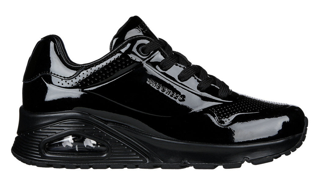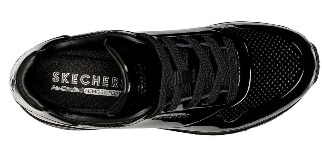Skechers UNO SHINY ONE  - sportowy styl w połączeniu z komfortem. Buty do noszenia na co dzień. Cholewka ze skóry patenowej lakierowanej z logotypami producenta.