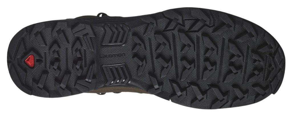 W bucie zastosowano genialne podeszwy Salomona o nazwie Contagrip® MA dające nadzwyczajną przyczepność na  każdej powierzchni. Zapewniają dobre trzymanie do nawierzchni terenu nawet na  na suchym oraz śliskim i mokrym podłożu (co jest szczególnie odczuwalne podczas poruszania się w dół zbocza). Ostra rzeźba bieżnika z odwróconym wzorem „w jodełkę” pomaga podeszwie w zaczepianiu się o każde podłoże i daje pewność podczas każdej wędrówki.