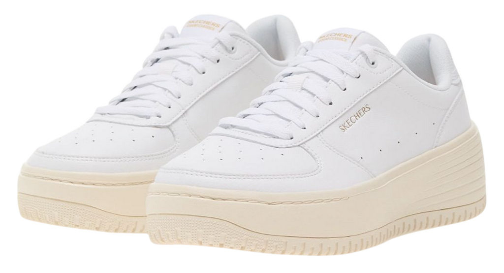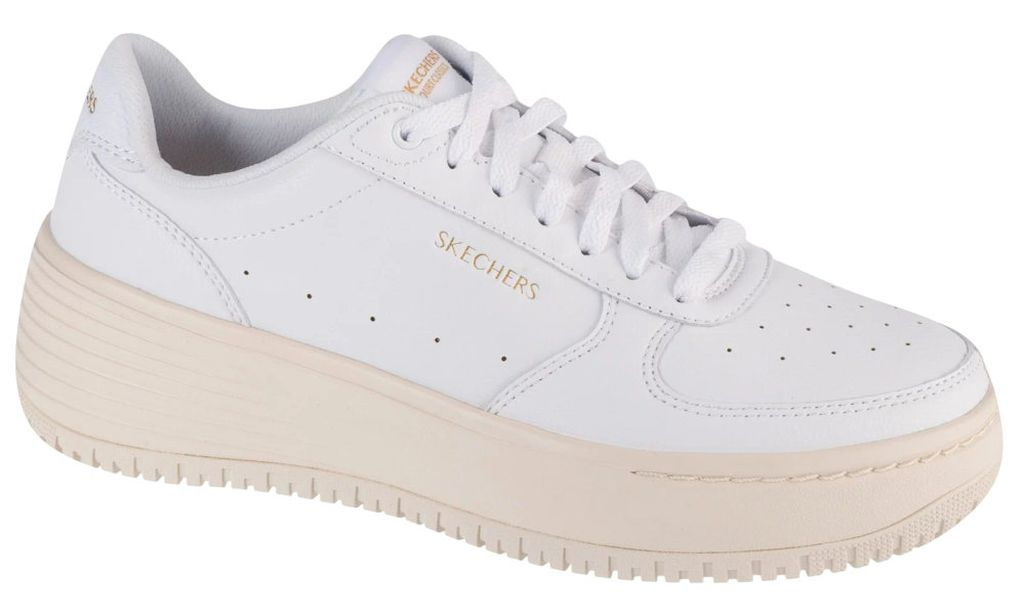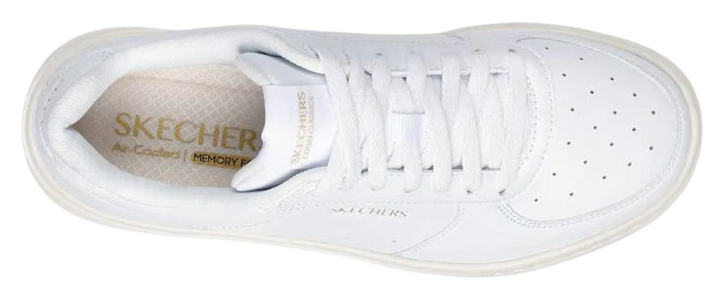 Te sznurowane modne trampki mają gładką perforowaną cholewkę syntetyczną z wkładką Air-Cooled Memory Foam® i widoczną amortyzowaną podeszwą środkową Skech-Air®.