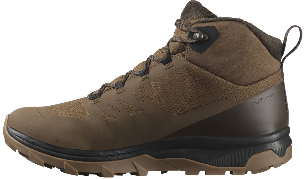 SALOMON OUTsnap CSWP - nowa wersja butów zimowych średniej wysokości, wyposażonych w podeszwę zapewniającą stopom naturalny ruch, wodoodporną membranę ClimaSalomon™ . Idealne obuwie na zimową aktywność w górach. Buty wyposażono w gwarantujący ochronę profil średniej wysokości oraz amortyzowaną podeszwę środkową. Podeszwa zewnętrzna Contagrip® gwarantuje pewność i przyczepność na każdym podłożu.