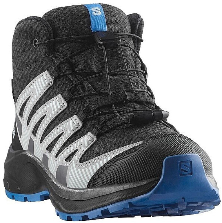 • Salomon XA PRO V8 MID WP J to średniej wysokości buty dla aktywnych, na chłodne i wilgotne dni. Zwinne i wygodne dzięki miękkiej wyściółce. Oferuje świetną przyczepność, stabilność i ochronę mniejszych stóp przed wodą.
