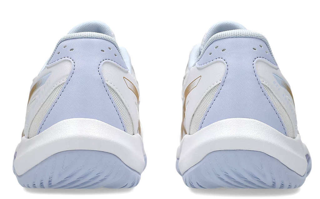 Dodatkowo buty te zawierają również warstwy ze skóry ekologicznej poprawiające wsparcie w przedniej części stopy i pomagające sportowcom wykonywać pewniejsze ruchy po skosie. Model ten został zaopatrzony w technologię TRUSSTIC™ w podeszwie środkowej, co poprawia stabilność podczas szybkich przejść. Element amortyzacyjny w technologii GEL™ pod piętą sprzyja lepszej absorpcji wstrząsów i zapewnia doskonały komfort. Zawijana i osadzona podeszwa zapewnia przydatne wsparcie podczas ruchów bocznych.