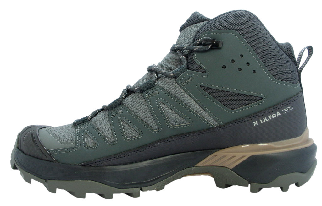 SALOMON X ULTRA MID 360 GTX  - model inspirowany bestsellerową linią obuwia X-ULTRA. Są to uniwersalne, lekkie buty, o precyzyjnym dopasowaniu, stabilne, niezastąpione podczas szybkich spacerów w wymagającym terenie. Jest to wszechstronny model przeznaczony dla amatorów trekkingu, do chodzenia po górach, nierównym kamienistym terenie. Łączy precyzyjne dopasowanie z ostrą rzeźbą bieżnika, zapewnia wentylację i wsparcie stopy, dzięki czemu sprawdzi się nawet na najbardziej wymagających szlakach.