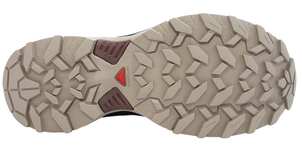 W bucie zastosowano genialne podeszwy Salomona o nazwie  All Terrain Contagrip® dające nadzwyczajną przyczepność na  każdej powierzchni. Zapewniają dobre trzymanie do nawierzchni terenu nawet na  na suchym oraz śliskim i mokrym podłożu (co jest szczególnie odczuwalne podczas poruszania się w dół zbocza). Ostra rzeźba bieżnika z odwróconym wzorem „w jodełkę” pomaga podeszwie w zaczepianiu się o każde podłoże i daje pewność podczas każdej wędrówki.