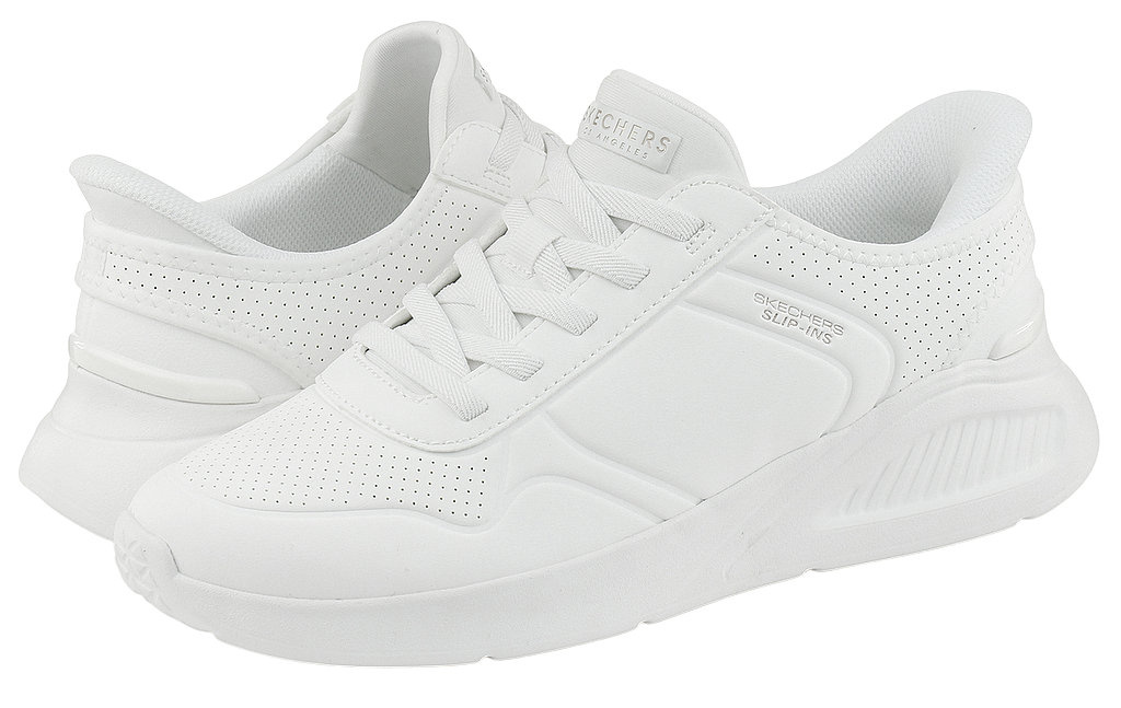 SKECHERS Uno Lite - Floating Steps  - wsuwane, modne sneakersy z perforowaną cholewką z syntetycznego durabucku, wyposażone we wkładkę z pianki Skechers Air-Cooled Memory Foam® oraz podeszwę środkową na koturnie.