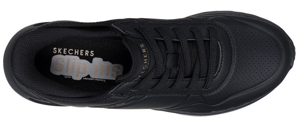 SKECHERS Uno Lite - Floating Steps  - wsuwane, modne sneakersy z perforowaną cholewką z syntetycznego durabucku, wyposażone we wkładkę z pianki Skechers Air-Cooled Memory Foam® oraz podeszwę środkową na koturnie.