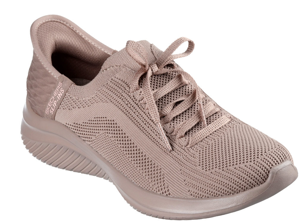 Skechers Slip-ins: Ultra Flex 3.0 - Pure Color - sportowy styl w połączeniu z komfortem. Popraw swoją wygodę dzięki Skechers Hands Free Slip-ins™. Te wsuwane buty mają cholewkę z dzianiny Stretch Fit®, ozdobne sznurowadła i amortyzowaną wkładkę Skechers Air-Cooled Memory Foam®.