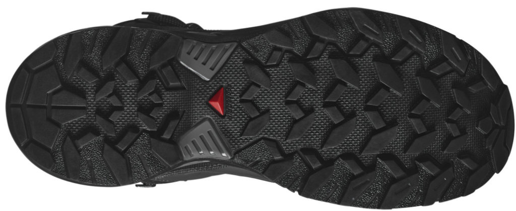 W bucie zastosowano genialne podeszwy Salomona o nazwie All Terrain Contagrip®  dające nadzwyczajną przyczepność na  każdej powierzchni. Zapewniają dobre trzymanie do nawierzchni terenu nawet na śliskim i mokrym podłożu (co jest szczególnie odczuwalne podczas poruszania się w dół zbocza). Ostra rzeźba bieżnika z odwróconym wzorem „w jodełkę” pomaga podeszwie w zaczepianiu się o każde podłoże i daje pewność podczas każdej wędrówki. Mieszanka Winter Contagrip® gwarantuje pewną przyczepność w każdych warunkach śniegowych.