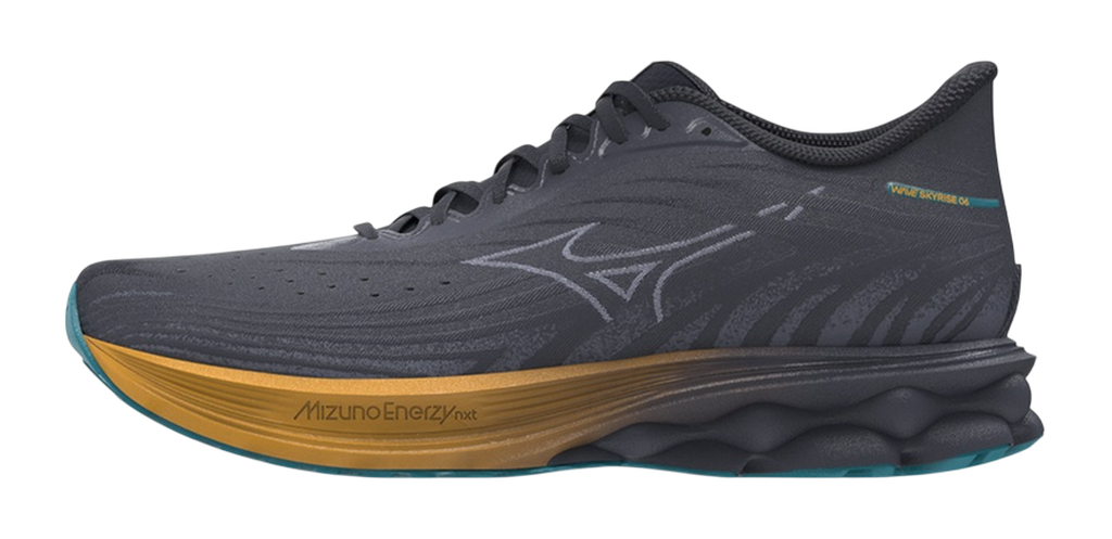 MIZUNO WAVE SKYRISE 6  buty do biegania, zaprojektowane do miękkiego i wygodnego biegu. Wzbogacone o MIZUNO ENERZY CORE, zapewniają niesamowitą miękką amortyzację i wysoki zwrot energii. Lekkość dzięki cholewce, która dobrze dopasowuje się do stopy jak skarpetka.