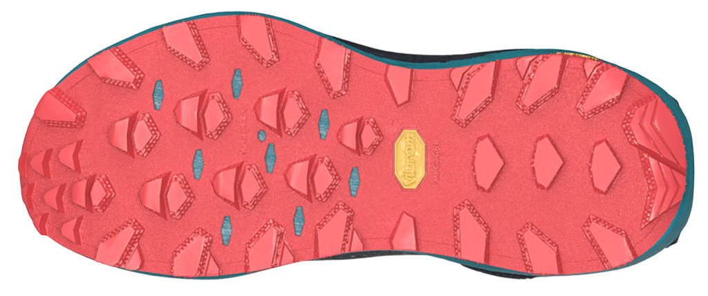 Podeszwa zewnętrzna Vibram Megagrip zapewnia doskonałą przyczepność nawet na długich technicznych szlakach oraz na mokrym i nierównym terenie.