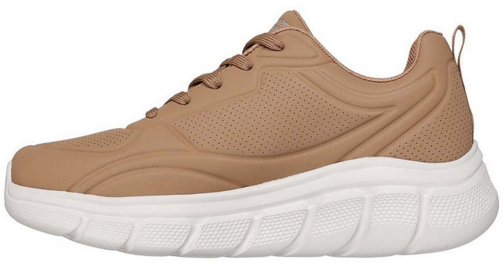 Mają sznurowaną, cholewkę z syntetycznej skóry, wygodną wkładką Skechers Memory Foam™i elastyczną podeszwę zewnętrzną BOBS B Flex zapewnia elastyczną przyczepność i swobodę ruchów.