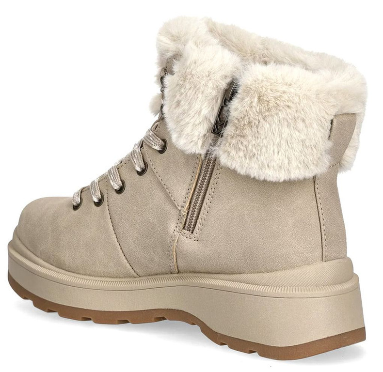 W górnej części cholewka wykończona kołnierzem ze sztucznego futra.