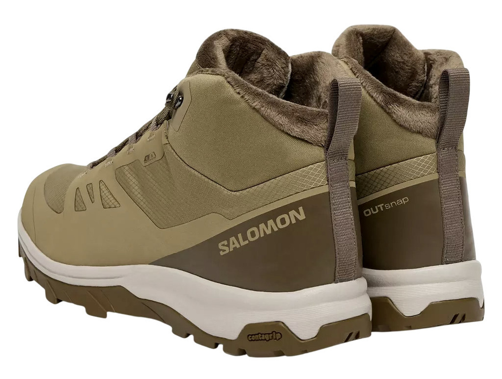 SALOMON OUTsnap CSWP - nowa wersja butów zimowych średniej wysokości, wyposażonych w podeszwę zapewniającą stopom naturalny ruch, wodoodporną membranę ClimaSalomon™ . Idealne obuwie na zimową aktywność w górach. Buty wyposażono w gwarantujący ochronę profil średniej wysokości oraz amortyzowaną podeszwę środkową. Podeszwa zewnętrzna Contagrip® gwarantuje pewność i przyczepność na każdym podłożu.