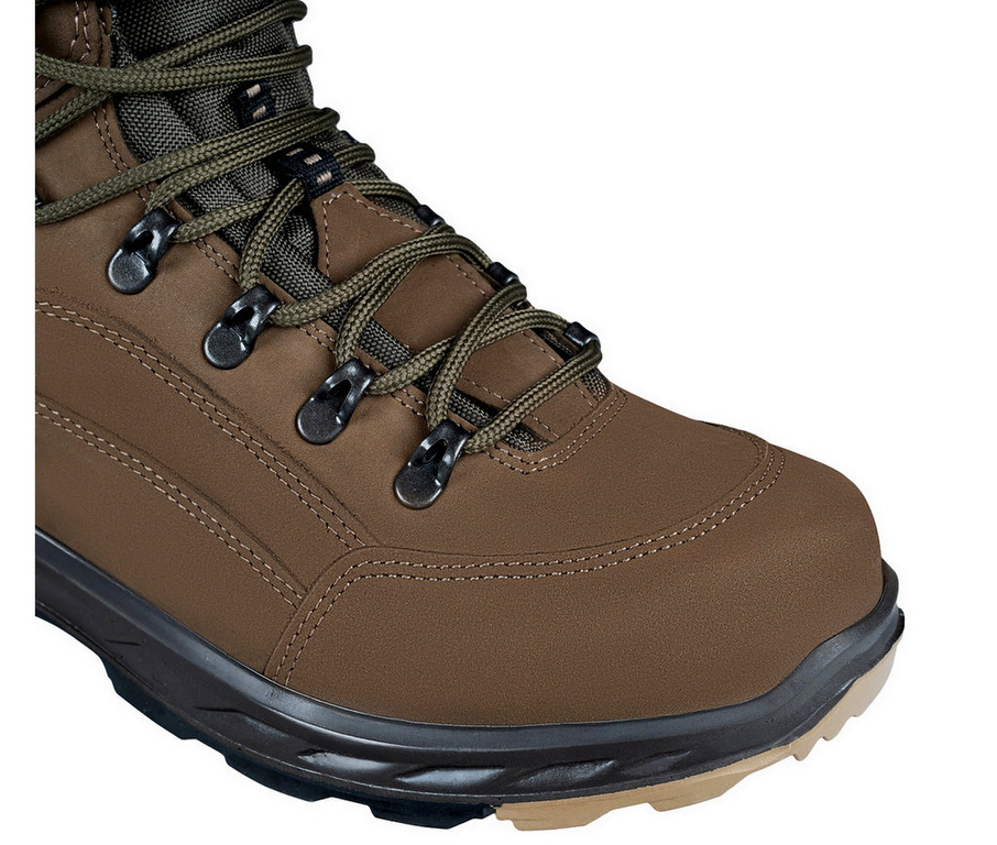 Cholewka buta wykonana została z impregnowanego grubego nubuku, który jest wyjątkowo odporny na przetarcia, zarysowania i uszkodzenia mechaniczne, ze skóry odpornej na przemakanie która jednocześnie skutecznie odprowadza wilgoć na zewnątrz.