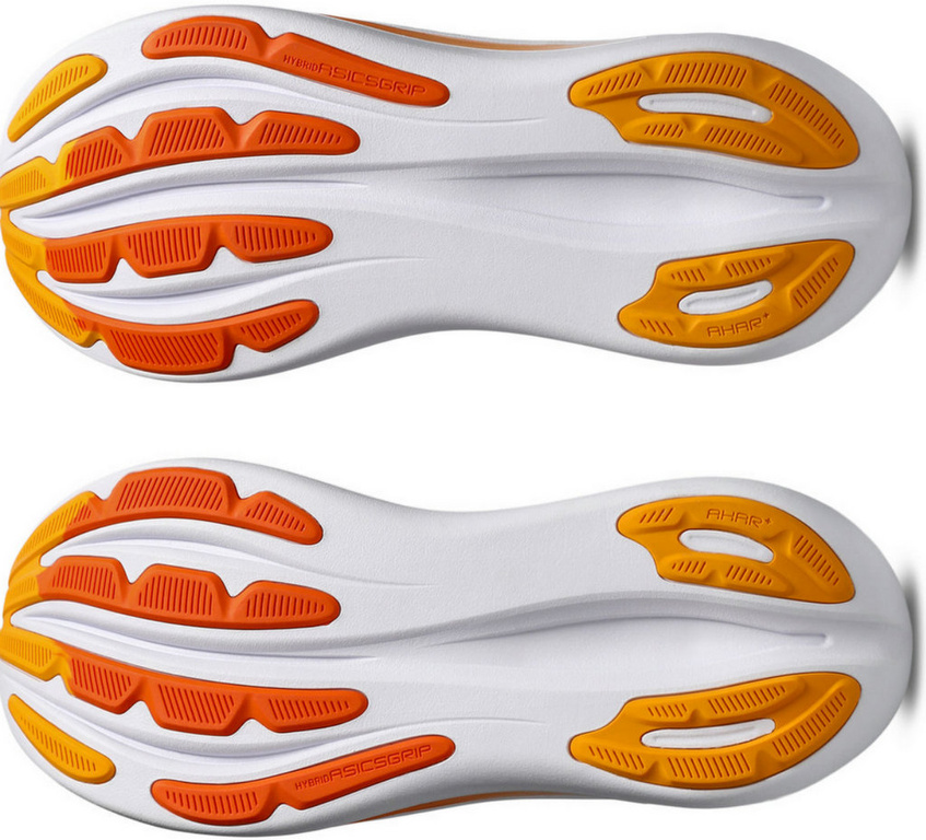W bieżniku ASICSGRIP™ HYBRID zastosowano połączenie gumy ASICSGRIP™ i materiałów AHARPLUS™. Ta kombinacja przyczynia się do zapewnienia zaawansowanej przyczepności i stabilności na różnych nawierzchniach oraz zwiększonej wytrzymałości.