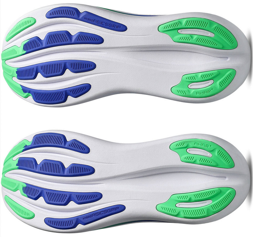 W bieżniku ASICSGRIP™ HYBRID zastosowano połączenie gumy ASICSGRIP™ i materiałów AHARPLUS™. Ta kombinacja przyczynia się do zapewnienia zaawansowanej przyczepności i stabilności na różnych nawierzchniach oraz zwiększonej wytrzymałości.