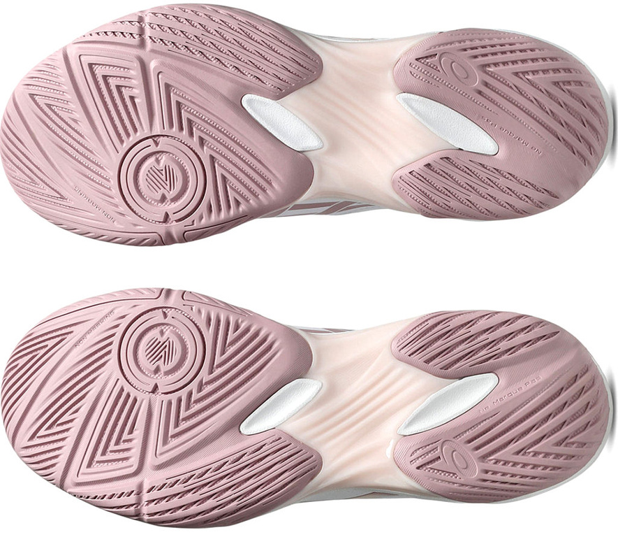 Zawijana wstawka w okolicy pięty zwiększa obszar styku podczas fazy lądowania, pomagając uzyskać płynniejsze lądowanie. Elastyczne żłobienia w bieżniku uzupełnione są o przyczepny wzór po bokach, zwiększający elastyczność na korcie.