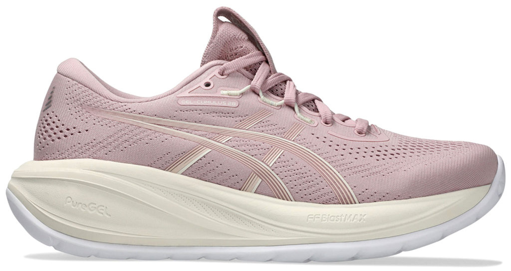 ASICS GEL-CUMULUS™ 28  -  dopasowuje się do każdego biegu, zapewniając wygodę i wsparcie na każdym podłożu: od krótkich przebieżek po biegi na średnie dystanse.To jak dotychczas nasz najlżejszy i cechujący się najlepszą amortyzacją model obuwia GEL-CUMULUS. Jest tak wygodny, że podczas biegu zapewnia całkowity spokój umysłu. Zostały zaprojektowane tak, aby zapewnić  uczucie większej miękkości i płynniejszego biegu. Kontynuując czerpanie inspiracji z chmur kłębiastych, ponownie zaprojektowana została cholewka i podeszwa środkowa tych butów dla biegaczy z neutralną stopą. Zastosowane zostało bardziej holistyczne podejście do projektowania, którego celem było dostosowanie się obuwia do anatomii biegacza w ruchu.
