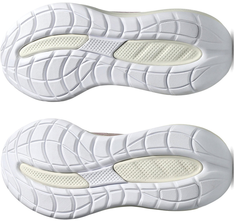 - Gumowa wstawka pod piętą  o mniejszej gęstości w najważniejszych obszarach podeszwy zapewnia niezawodną przyczepność i stabilność bez zmniejszania wytrzymałości.